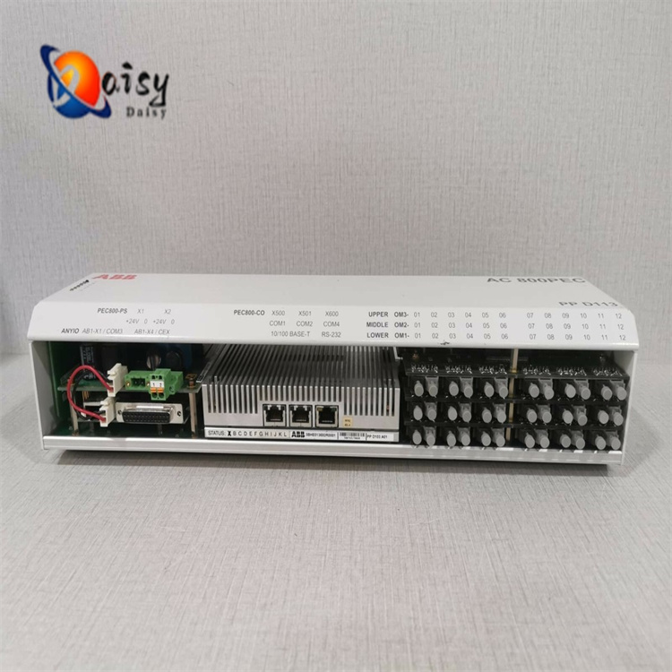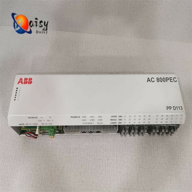 Working Process: The AC800PEC receives signals (e.g., voltage, current, temperature) from sensors through analog input channels, processes and calculates these signals according to preset control algorithms, and then sends control signals via analog output channels or digital output channels to control the actions of actuators. This enables precise control of the system. Meanwhile, it can exchange data and communicate with other devices via communication interfaces to achieve system integration and remote monitoring.